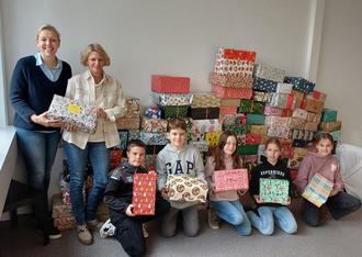 Voller Freude haben die Kinder Schuhkartons mit nützlichen Sachen wie Schulmaterialien und Pflegeprodukten, aber auch mit Kleidung und Spielsachen befüllt und anschließend schön weihnachtlich verpackt.