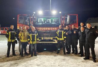 Rund 560 Kilometer hatten Wehrführer Thorsten Neuhaus, der stellvertretende Wehrleiter Daniel Hundhausen und der stellvertretende Wehrführer Sebastian Velten mit ihrem insgesamt achtköpfigen Team in rund neun Stunden zurückgelegt. Vorausgegangen war in Luckenwalde die Abnahme, Einweisung und Übergabe des HLF 10 an das Team. Thorsten Neuhaus bezeichnet das als einen erhabenen Moment, genauso wie die erste Fahrt. Er sei jetzt noch richtig aufgeregt. Auch Volker Hain vom Kreisfeuerwehrverband ist begeistert. „Sowas erlebt man höchsten zwei Mal in seinem Leben als Feuerwehrmann.“