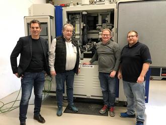 v.l.n.r. Burkhard Schneider (Schuleiter BBS Wissen), Christoph Böhmer (Geschäftsführer), Alexander Schmidt (Leiter Finanzbuchhaltung), Jens Orthen (Technischer Leiter)