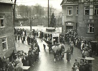 Der Wissener Amateurfotograf Alfons Reinstädtler hat eine Vielzahl von erstklassigen Aufnahmen hinterlassen. Eine davon zeigt den ersten heimischen Karnevalsumzug nach dem Zweiten Weltkrieg im Jahr 1950 und ist entstanden im Unterdorf mit der alten Siegbrücke im Hintergrund.