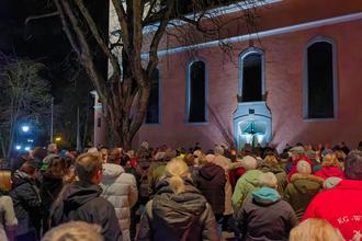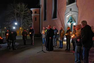 Zum Ende der Schweigeandacht stellten die Teilnehmer Kerzen auf.