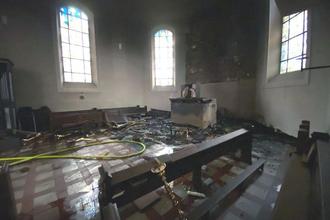 Der Altarraum nach dem Brand - ein Bild der Zerstörung.