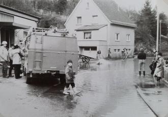 Pumpen was geht, die Feuerwehr Altenkirchen vor der damal. Schreinerei Zöller in der Schlossstr.