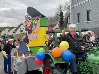 Bekannte Gesichter und Gruppen gab es auch diesmal wieder viele zu sehen. War der Höhnerstall 2.0 unterwegs mit viel "Happy Konfetti", hatten sich die Basaltfreunde in diesem Jahr dem Erzbergbau verschrieben. Nicht fehlen durften die "Begossenen Pudel" vom Kegelclub mit jede Menge Spinat, Popeyes und Olivias in Fußgruppe und Wagen, gezogen von Helmut Kern auf seinem kleinen Traktor.