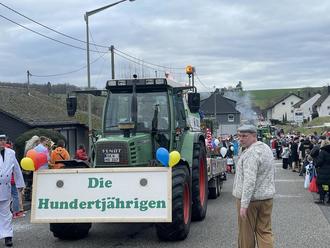 Gleich zwei Ortsvereine und -organisationen, nämlich der Schützenverein Elkhausen-Katzwinkel (SV) und die Jugendfeuerwehr der Freiwilligen Feuerwehr Katzwinkel (FFW) ließen mit ihren Wagen schon Ausschau nehmen auf bevorstehende Jubiläen. Unter dem Motto "Die Hundertjährigen" machte der SV auf sein 100-jähriges Jubiläum aufmerksam. Und wenn die FFW auch zum Motto "Back to the Achziger" unterwegs war, wurde auch hier die Feier zum 75-jährigen Jubiläum im Juni mit Vorfreude betont.