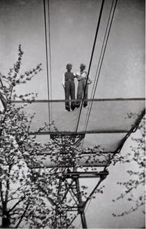 Foto könnte nach 1945 gemacht worden sein, zwei Jugendliche auf dem Netz