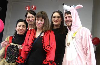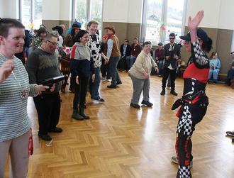 Auch die Westerwald-Werkstätten der Lebenshilfe in Steckenstein hatte der Karnevalsvirus voll erfasst. Gefeiert wurde wie immer im großen Mehrzwecksaal der Einrichtung und dies gewohnt ausgelassen. Schon vor dem Eintreffen der Wissener Tollitäten sangen die Beschäftigten aus voller Brust die einschlägigen Lieder mit und erfreuten sich im übrigen ihrer phantasievollen Kostümierung. Simon Reinfeld und Dennis Eutebach schoben die Stimmung mit ihrer Musikanlage auf immer neue Höhen. Dann wurde es Ernst im Saal. Der Narhalla-Marsch kündigte den Einzug des Dreigestirns an. Augenblicklich bildete man ein Spalier und wartete gespannt auf das, was kommen sollte. Moderatorin Petra Baldus stimmte zu Ehren der Tollitäten ein dreifaches „Wissen o-jö-jo“ an. Natürlich gab es auch den Hausorden für die Gäste. Bäuerin Andrea I. revanchierte sich mit einem Dankeschön für den freundlichen Empfang. Dazu überreichte Prinz Thomas II. Frau Baldus den aktuellen Sessionsorden. Dann schob sich eine lange Polonaise durch den Festsaal. Man sah sich die Kostüme genau an. Ausgewählt wurden am Ende Marcel Rosenkranz (Süße Maus), Dzhmile Yaldaz (Djinn aus der Lampe) und Melanie Timm (Flamencotänzerin) für das schönste Outfit. Neben der Moderatorin beteiligte sich Juliane Held am Verteilen der Siegerurkunden. Nach der obligatorischen Büttenrede von Paul Sturm kam die hauseigene Manga-Tanz-Gruppe unter Leitung von Tobias Bender, Lydia Hasselhoff, Sarah Bauer und Jasmin Tawfeeky zu ihrem Recht. Am Schluss animierte Carina Hoffmann die Feiergemeinschaft noch zu einem gigantischen Flashmob. (bt)