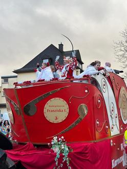 Ein besonderes Highlight war natürlich auch in diesem Jahr der prachtvoll geschmückte Prinzenwagen. Darauf eine ganz besondere Fracht: das diesjährige Dreigestirn mit Prinz Thomas II., Jungfrau Lara I. und Bauer Andrea I. sowie Kinderprinzessin Franziska I. mit ihrem Gefolge. Gemeinsam feierten sie den Höhepunkt des Wisser Karnevals und wurden von den Jecken begeistert empfangen.