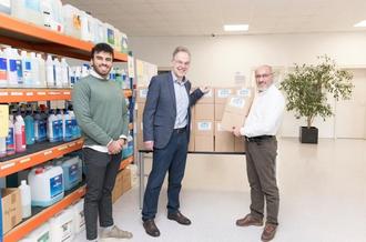 In diesen Paketen befinden sich Lebensmittel und Alltagsprodukte - von Mehl, Zucker und Schokolade bis hin zu Handseife oder auch Spülmittel.