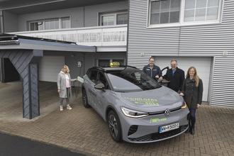 Das neue Fahrzeug macht nicht nur optisch eine gute Figur, sondern punktet auch mit 100 Prozent elektrischem Antrieb. Die passende Wallbox zum Aufladen des Elektroautos ist längst installiert und kommt nun zum Einsatz. Um gänzlich autark unterwegs zu sein, ging Hilgers jedoch noch einen Schritt weiter und ließ eine Photovoltaikanlage auf dem Garagenvordach installieren, um das Fahrzeug mit selbst erzeugtem Strom aus erneuerbaren Energien zu laden. Diese Innovation nahmen VG-Klimaschutzmanagerin Helena Frink und Bürgermeister Andreas Heidrich zum Anlass, der Familie Hilgers persönlich zu ihrer neuesten Errungenschaft zu gratulieren. Die Fahrgäste des Taxiunternehmens können sich in Zukunft auf klimafreundliche Fahrten freuen und sich persönlich von den Vorzügen eines Elektroautos überzeugen.