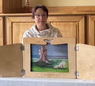 Bei einer spannenden Geschichte, erzählt mit Hilfe des Bilderbuchkinos Kamishibai, konnten die Kinder ein wenig zur Ruhe kommen. Es gab noch reichlich Gelegenheit im Bestand der Bücherei zu stöbern und Interessantes zu entdecken. Die kleinen Besucherinnen und Besucher waren sich einig, dass sie gern auch zu den regulären Öffnungszeiten wiederkommen wollten, um Bilderbücher oder andere Medien auszuleihen. Die Kinder überreichten ein Dankeschön an die Büchereimitarbeiterinnen und dann war der Besuch auch schon zu Ende. Die Vorschulkinder machten sich, ausgestattet mit einem kleinen Geschenk, wieder auf den Fußweg zum Bahnhof und fuhren mit der Bahn zurück.