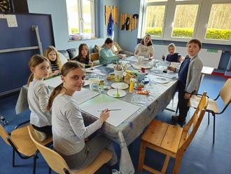 Angelina Ritter (hinten Mitte), Schülerin der Erzieherfachschule Westerburg leitete das Kreativprojekt im Rahmen Ihres Praktikums in der Jugendarbeit an.
