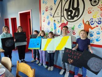 Stolz präsentieren die kleinen Künstler ihre Werke