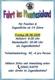 Bei Rückfragen steht Ihnen das Team des Jugendbahnhofes gerne unter der Telefonnummer 02661/63270 zur Verfügung