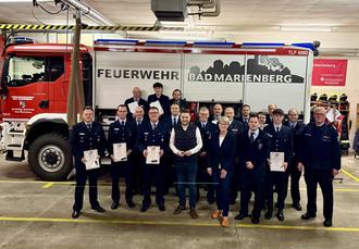 Am 21.03.2026 fand die Jahreshauptversammlung der Freiwilligen Feuerwehr Bad Marienberg statt. Wehrführer Sascha Stimper begrüßte im Feuerwehrhaus Jahnstraße insgesamt 48 Aktive und Gäste. Nach der Totenehrung wurden sieben Grußworte unserer Gäste gesprochen. Unter den Rednern war erstmals der neue Bürgermeister Marvin Kraus, der u.a. vom Projektfortschritt des neuen Feuerwehrhauses und weiterer Investitionen in den Brandschutz informierte.