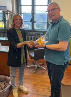 Jörg Denker gratuliert Jessica Kempf zur Geschäftseröffnung