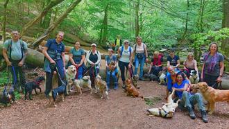 Diesmal ging es für Sylwie und ihre Hundekumpels auf eine Wanderung mit attraktiven Landschaften in Verbindung mit historischen und geologischen Besonderheiten und reizvollen Fernblicken. Auf unserem Weg von Irmtraut passierten wir den "Hessenblick". Weiter wanderten wir über Waldwege zu der quirligen Holzbachschlucht. Die Holzbachschlucht ist ein beeindruckendes Naturschutzgebiet. Das Wasser des Holzbaches war eine willkommene Abkühlung für alle Hunde bei den warmen Temperaturen. Auch gab es wieder ein tolles Picknick mit selbstgemachten Leckereien von Uschi für Mensch und Hund. Auf schmalen Pfaden gelangten wir zum Hofgut Dapprich. Hoch hinauf ging es anschließend auf die Panoramaplattform der St. Michael-Josef-Kapelle. Über weitere Wiesenpassagen gelangte die gut gelaunte Gruppe zum Ausgangspunkt unserer Wanderung zurück.