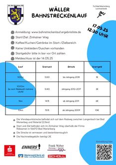Am Samstag, den 17.05.2025, richtet die Leichtathletikabteilung der TuS Bad Marienberg auf der ehemaligen Bahnstrecke und jetzigem Radweg zwischen Bad Marienberg/Langenbach und der alten Erbacher Bahnbrücke den 1. Wäller Bahnstreckenlauf aus.