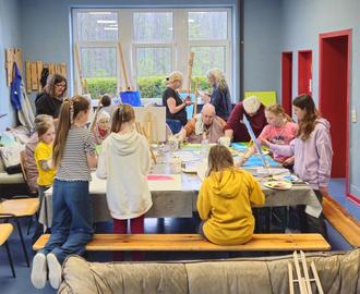 Den Abschluss der Künstlerwerkstatt bildete am Freitag, dem 25sten April, eine Finisage im DRK-Seniorenzentrum Sonnenhof anlässlich des jährlichen Tages der Generationen, den die Einrichtung in diesem Jahr zum 25sten Mal mit dem Verbandsgemeinde Jugendbahnhof gestaltete. Bei toller Atmosphäre fand der generationsübergreifende Austausch seinen Höhepunkt bei Kaffee, Limonade und Kuchen, inmitten all der entstandenen tollen, ausdrucksstarken Bilder.
