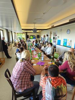 Theresia Müller-Kunz (hinten links) in mitten begeisterter kleiner und großer Mal-Fans