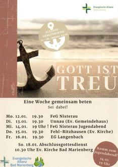Herzliche Einladung zur Allianzgebetswoche in diesem Jahr an folgenden Orten: