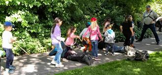 Frischer Wind und eine strahlende Sonne begrüßten zehn kleine „Weltentdecker“, die sich trafen, um den Kurpark im Frühling zu erleben. Begeistert spürten sie die unterschiedlichen Böden des Barfußweges unter ihren Füßen und wollten nicht mehr aufhören, Runde um Runde zu laufen. Doch dann „verwandelte“ Ingrid - die Leiterin des Nachmittags - alle Kinder in „fleißige Bienchen“, die im Apothekergarten Honig-(Bonbons!) sammeln konnten. Ein Blick auf die blühenden Apfelbäume zeigte den Kindern, wo sich die Bienen mit Pollen versorgen. Ein Murmelspiel auf der Boule-Bahn sorgte für spannende Momente, bevor es zur Konzertmuschel ging. Auf der angrenzenden Wiese ließ sich die Gruppe zu einem Picknick nieder, wo mit großem Appetit der mitgebrachte Imbiss genossen wurde.
