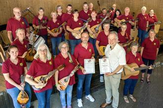 Der Mandolinenclub erhält den Preis für seinen herausragenden Beitrag zur Förderung der Kultur und der Musik. Unter großem Applaus der vielen Ehrengäste und Festbesucher überreichte der Bürgermeister die Urkunde nebst der damit verbundenen Dotation an den sichtlich überraschten und erfreuten Vorsitzenden im Kreise der Orchestermitglieder.