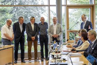 Anschließend verabschiedete der Bürgermeister die ausgeschiedenen Ratsmitglieder mit einem kleinen Präsent. Eine besondere Anerkennung erhielten die ausgeschiedenen Ratsmitglieder Dankwart Neufurth, Gisbert Dörner, Hans-Alfred Graics und Uli Leukel, denen Andreas Heidrich in Anerkennung ihres langjährigen, großen, ehrenamtlichen Engagements in den Gremien der Verbandsgemeinde eine Urkunde und die Verdienstmedaille der Verbandsgemeinde Bad Marienberg überreichte. Der ebenfalls ausgeschiedene Karlo Schwarz hatte diese Ehrung bereits früher erhalten.