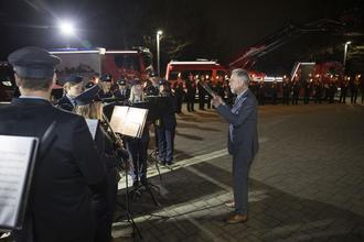 Ein bewegender Abschluss der feierlichen Sitzung des Verbandsgemeinderats anlässlich der Verabschiedung von Bürgermeister Andreas Heidrich und Amtseinführung von Marvin Kraus: Andreas Heidrich dirigierte eigenhändig das Konzert des Musikzuges der Freiwilligen Feuerwehr Nistertal zu seinem Abschied.