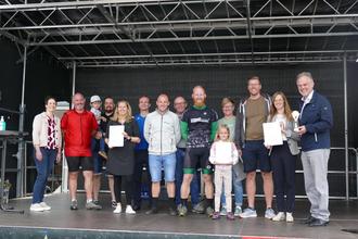Danach folgten die verbandsgemeindeinternen Wertungen: 171 aktive Radler*innen aus der Verbandsgemeinde Bad Marienberg waren in 18 Teams innerhalb der Verbandsgemeinde gegeneinander angetreten. Helena Frink moderierte die Siegerehrung und übergab im Auftrag von Bürgermeister Andreas Heidrich sowie Kerstin Schmidt Urkunden und Preise an die drei besten Teams sowie die drei besten Einzelradler.
