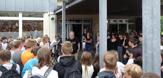 Am vorletzten Schultag vor den Sommerferien besuchten die beiden Klimaschutzmanager*innen die Marie-Curie-Realschule plus, um im Beisein der Schülerschaft die Siegerurkunden zu überreichen. Als beste weiterführende Schule im Westerwaldkreis nahm Schulleiter Thomas Eppendorf die Urkunde im Namen der Lehrer*innen und Schüler*innen dankend entgegen.