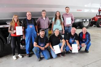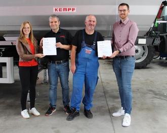 Den Besuch bei der Firma Fahrzeugbau Kempf nahmen Frau Frink und Herr Baumann nicht nur zur Übergabe der Preise, sondern auch für einen lockeren Austausch zur Aktion mit den Teilnehmenden der Firma Kempf. Nach Übergabe der Einzelpreise an Markus Gottstein und Andre Wagner für die Plätze zwei und drei im VG-Einzelfahrer-Ranking, wurde auch das tolle Teamergebnis nochmals aufgegriffen. Durch die Platzierung im Unternehmensranking des Westerwaldkreises, wurden die Unternehmen in den Verbandsgemeindewertungen nicht berücksichtigt. Da die Firma Kempf jedoch die meisten pro Kopf Kilometer innerhalb der Verbandsgemeinde geadelt hat, gab es seitens der Verbandsgemeinde eine zusätzliche Prämierung.