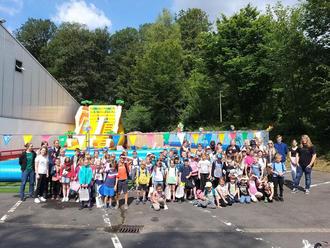 Verortet war die 14-tägige Ferienbetreuung in diesem Jahr an der Wolfstein-Grundschule im Schulzentrum Bad Marienberg. Bei schönstem Sommer-Wetter und leckerem, gesunden Mittagstisch in der Westerwald-Jugendherberge erlebten die 84 teilnehmenden Grundschüler*innen und Fünftklässler*innen ein abwechslungsreiches Programm mit spannenden Inhalten und tollen gemeinsamen Aktivitäten.