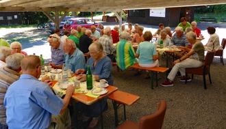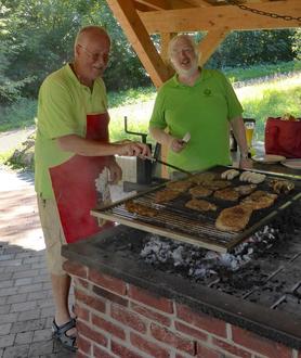 Zum Sommerfest kamen 41 Personen zur Hardter-Grillhütte und freuten sich, endlich wieder mal gemütlich zusammensitzen zu können. In bewährter Weise haben Vereinskameradinnen köstliche Kuchen und Salate mitgebracht und Grillmeister Detlev sorgte für leckeren Grillgenuss. Hans Jürgen Wagner begrüßte die Runde und Ingrid Wagner gab eine Vorschau auf die künftigen Aktivitäten. (s.u.) Küchenfee Hannelore war zum letzten Mal im Einsatz - sie zieht es in den unteren Westerwald, bleibt dem Verein aber weiterhin treu. Mit einem dankbaren und herzlichen Applaus wurde sie von den Anwesenden verabschiedet und erhielt vom Vorsitzenden ein kleines Geschenk für ihr Engagement. Hans Jürgen dankte allen Helferinnen und Helfern für ihren Einsatz und hofft, auch im nächsten Jahr wieder ein Sommerfest veranstalten zu können.