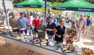 Inhaber Jochen Weyand (rechts) präsentierte anlässlich des Genusstages der Brennerei Weyand seine Erzeugnisse. Gemeinsam mit ihm freuten sich die Unnauer Ortsbürgermeisterin Iris Wagner und Bürgermeister Andreas Heidrich (2. und 3. v.r.) über die Aufnahme in die Liste „Immaterielles Kulturerbe“ der UNESCO.