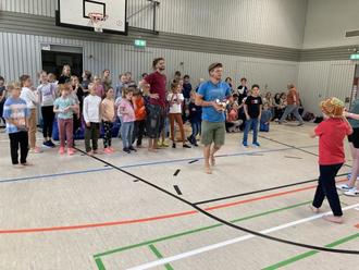 Nachdem sie sich am ersten Tag in den einzelnen Disziplinen ausprobieren konnten, um herauszufinden, was ihnen liegt und Freude bereitet, ging es in altersübergreifenden Wahlgruppen ab dem zweiten Tag ans Üben und Choreografieren, bis alles wie von Zauberhand durch die Zirkuspädagogen zu einem tollen Programm zusammengefügt wurde. Die Aufführung vor Eltern, Großeltern und Geschwisterkindern offenbarte dann, was die Kinder in den vier Tagen mit Feuereifer gelernt hatten. Voll Stolz präsentierten sie ihr Können einem begeisterten Publikum.