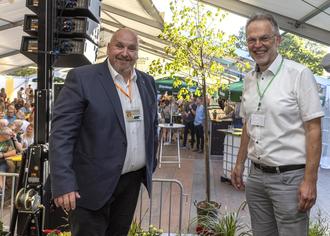 Als Jubiläumsgeschenk übergab Bürgermeister Andreas Heidrich (rechts) eine Winterlinde zusammen mit einem Geldpräsent der Verbandsgemeinde und Stadt Bad Marienberg sowie aller 16 weiteren Ortsgemeinden an Ortsbürgermeister Jochen Becker (links).