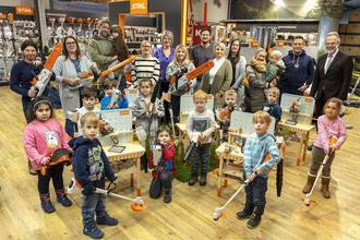 Kurz vor den Weihnachtsfeiertagen bereitete Martin Nauroth von der Firma Gartentechnik Nauroth aus Kirburg den Kindern in den Kindertagesstätten innerhalb der Verbandsgemeinde Bad Marienberg eine besondere Überraschung: Er übergab eine Spende in Form von elf Kinderwerkbänken der Firma Stihl. Die Werkbänke sind speziell als Kinderspielzeug entwickelt worden und enthalten viele Zubehörteile wie z.B. Laubbläser, Freischneider, Motorsäge und Helme.