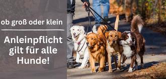 Immer wieder erreichen uns Beschwerden und Anzeigen besorgter Bürgerinnen und Bürger wegen freilaufender Hunde. Wir möchten an dieser Stelle nochmals darauf hinweisen, dass die Anleinpflicht für alle Hunde, unabhängig von Rasse oder Größe des Tieres, gilt.