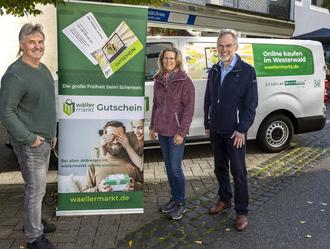 Am bestens besuchten verkaufsoffenen Sonntag nutzte Bürgermeister der Verbandsgemeinde Bad Marienberg Andreas Heidrich die Gelegenheit, sich beim Vorstand der Wäller Markt Genossenschaft Andreas Giehl und Ina Fischer, der Inhaberin des Flurhofs Fischer, über die aktuelle Entwicklung des regionalen Bündnisprojekts wällermarkt zu informieren. Schließlich betreibt Andreas Giehl gemeinsam mit seiner Frau Birgit die Trend Galerie Giehl in der Bismarckstraße. Um auf den wällermarkt aufmerksam zu machen, stellte Giehl eines der Elektro-Lieferfahrzeuge aus.