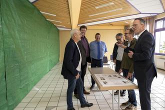 Architekt Philipp Alhäuser erläutert Ebling und Hering das Vorhaben im Bürgerhaus