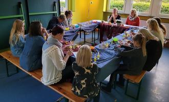 Bei einem gemeinsamen Wohlfühlnachmittag für Mütter und Töchter erfuhren die Mutter-Tochter-Paare von Eva Christina Becher, Gestaltcoach, wie sich pflegende Naturkosmetik herstellen lässt, die sie im Anschluss ebenso, wie die entsprechenden Rezepte mit nach Hause nehmen konnten. Sie kreierten Lippenpflegestifte aus Bienenwachs und Sanddornöl, eine Body-Lotion aus Frauenmantel und Sonnenblumenöl und eine Wärmesalbe für Hände und Füße aus geriebenem Apfel, Bienenwachs und einem Zimt- und Ingwersud. Beim “Abenteuer Achtsamkeit“, so der Titel des Nachmittages, verlebten die Teilnehmerinnen mit Atemübungen, gegenseitiger Igelballmassage, und Handmassage mit selbstgemachtem Duftöl unter Anleitung der Heilpraktikerin Martina Gies-Dick eine wohltuende entspannte Zeit miteinander. Die Achtsamkeitsübungen in wertschätzender Wohlfühlatmosphäre genossen Mütter wie Töchter gleichermaßen und waren am Ende der Veranstaltung voll des Lobes für den tollen Nachmittag.