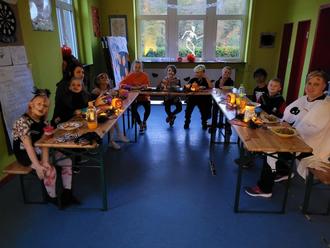 Christina Becher (rechts vorne) beim Gruseldinner zum Abschluss des gelungenen Motto-Spiele- und Kreativnachmittages im Jugendbahnhof.