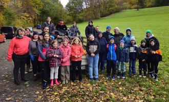 Gemeinsam mit den vielen kleinen und großen Helfern, freuten sich Bärbel Kiehne (links) und Ludwig Schürg ( zweite Reihe Dritter v. rechts) vom NABU Bad Marienberg e.V. über die tolle Ernte