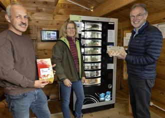 Alle erzeugten Bioland-Produkte - Eier, Nudeln, verschiedene Hühnerprodukte und Wurst von Rind und Schwein - sind über einen Automaten täglich von 8.00 bis 20.00 Uhr direkt ab Hof erhältlich.