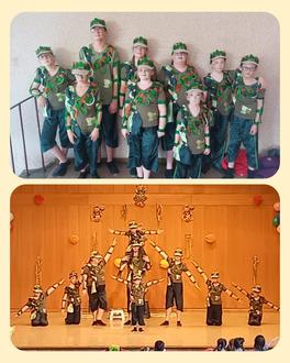 Nach dem alle Orden und Geschenke übereicht waren hieß es Ausmarsch für das Kinderprinzenpaar und ihre Begleiter. Im Anschluss zeigte unsere Showtanzgruppe die Karnevalskinder noch ihren neuen Tanz zum Thema Dschungel.