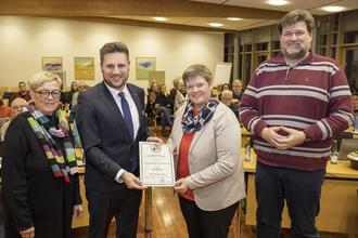 Bürgermeister Marvin Kraus überreichte gemeinsam mit den weiteren Beigeordneten Thomas Mockenhaupt und Eva Ehrlich-Lingens der neuen Ersten Beigeordneten Iris Wagner die Ernennungsurkunde und gratulierte ganz herzlich zum überzeugenden Votum. Damit ist das Führungsquartett der Verbandsgemeinde wieder komplett.