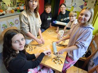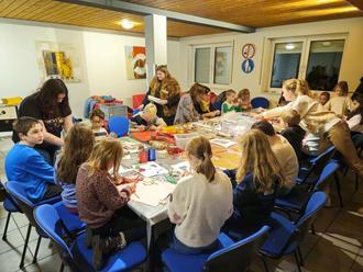 Alleine in Norken nahmen 19 Kinder teil. Mit der Besonderheit, dass, wie schon zur dezentralen „Hasenwerkstatt“, Schüler:innen der Unesco Projektschule Norken, begleitet von ihren Lehrerinnen, am offenen Angebot Gefallen fanden.
