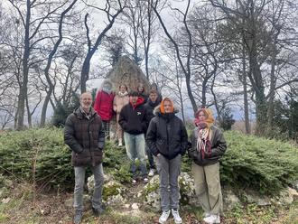 Eine kleine Wanderung auf dem Rheinsteig ermöglichte den Teilnehmer:innen den Kopf wieder frei zu bekommen und auf der Budenhäuser Höhe auf 268m mit Blick in den Rheinau einen Silberstreif am Horizont zu erheischen (vorne links Reiner Kuhmann). Foto: Jacqueline Müller