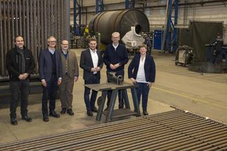 Bürgermeister Marvin Kraus (3. v. r.) und seine Stellvertreterin Iris Wagner (rechts), sowie die beiden Fraktionsvorsitzenden Dr. Kai Müller (CDU) und Thomas Zadro (Bündnis 90/Die Grünen), dankten Geschäftsführer Rüdiger Siefert (2.v.r.) und Fertigungsleiter Timo Quirmbach (links) für die Einblicke in den innovativen Traditionsbetrieb.